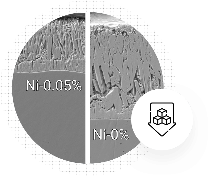Снижение расхода никеля по сравнению с никелевым порошком в среднем в 1,6-1,8 раза.